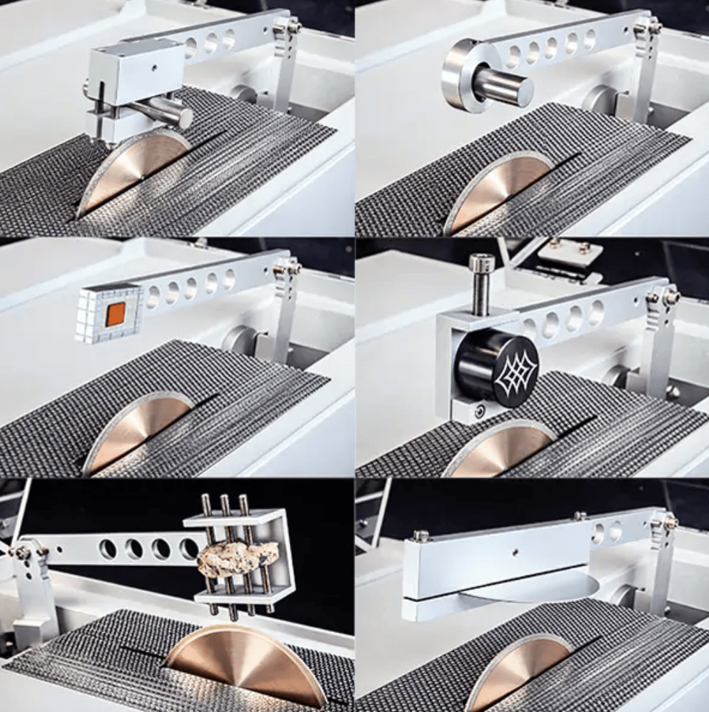 Người dùng có thể linh hoạt lựa chọn hoặc tùy chỉnh loại ê tô phù hợp dựa trên kích thước, hình dạng và yêu cầu cắt của mẫu, đảm bảo kẹp chắc chắn và ổn định trong quá trình cắt.